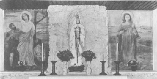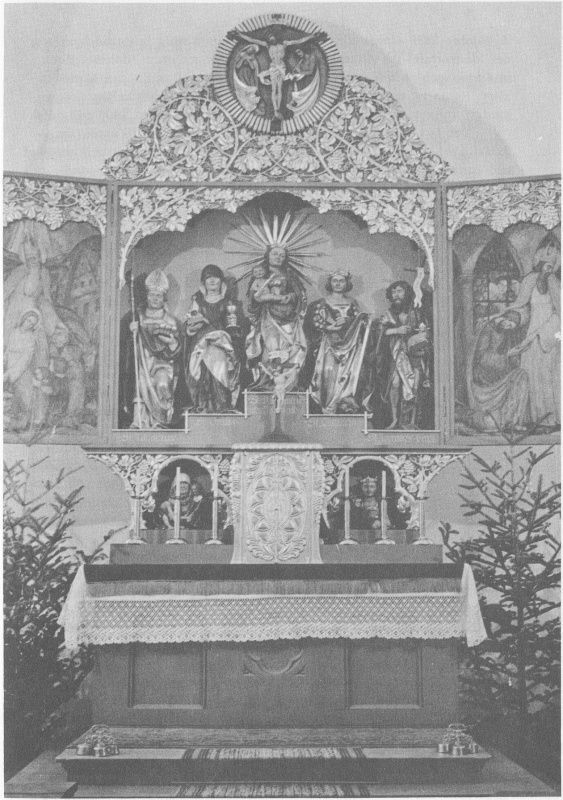 Der heutige Altar der Ottilienkapelle mit den Flügelbildern des einheimischen Malers Paul Koch und der Madonnenstatue des aus Weilen stammenden Professors Johannes Koch.