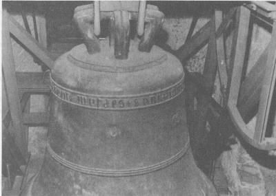 Die größere zweite Glocke hat ein Gewicht von etwa 450 kg. Der Ton ist B, und die Aufschrift lautet: „sant lugs, sant marx, sant mathes, sant johanes 1571 – oswalt klain.“ Von diesen beiden alten Glocken sollte schon im Ersten Weltkrieg eine abgeliefert werden. Infolge des hohen Alters und einer Eingabe mit Zeichnung an das Amt für Denkmalpflege durften wir die Glocken behalten. Im Zweiten Weltkrieg aber musste trotz verschiedener Eingaben an das Landratsamt Balingen, an die Kreisleitung und an das Amt für Denkmalpflege die größere Glocke abgeliefert werden. Jeder Ort durfte nur eine Glocke behalten. Am 20. März 1942 wurde die Glocke mit einem Lastwagen abgeholt. Vor der Abnahme waren nochmals beide Glocken etwa 20 Minuten lang zusammen geläutet worden. Viele, besonders ältere Einwohner, haben geweint, weil ihnen der Abschied von der liebvertrauten alten Glocke schwerfiel. Zum Glück für die Gemeinde und die Pfarrei Weilen traf aber von Stuttgart im Herbst 1947 die Nachricht ein, daß unsere abgelieferte Glocke noch auf dem Lagerplatz in Lünnen bei Hamburg mit einigen hundert anderen Glocken liege. Die nötigen Schritte für die Freigabe wurden dann über das bischöfliche Ordinariat in Rottenburg eingeleitet. AM 9. Februar 1948 brachte Stadtpfarrer Lackner von Schömberg unsere Glocke, welche er zusammen mit einer anderen zurückgegebenen Glocke in Balingen abgeholt hatte, mit einem Lastwagen zurück. Als Pfarrer Lackner mit dem Lastwagen oben am Withau war, hielt er an und hieß einige Buben die Glocke auf dem Turm zu läuten. Als die kleine Glocke vom Turm ihre zurückkehrende Schwester um 5 Uhr abends begrüßte, erschraken viele Leute. Am Sonntag darauf wurde dann die Glocke in feierlicher Weise in Anwesenheit der ganzen Gemeinde und einiger auswärtiger Personen geweiht. Der Kirchenchor sang ein für diese Feier extra komponiertes Lied. Nach kurzer Ansprache des Ortsgeistlichen fand in der Kirche noch ein Dankgottesdienst statt. Tags darauf wurde die zurückgekehrte Glocke wieder auf den Kirchturm hochgezogen und neben ihre Schwester aufgehängt. Nach der Montage läuteten beide Glocken längere Zeit zusammen.